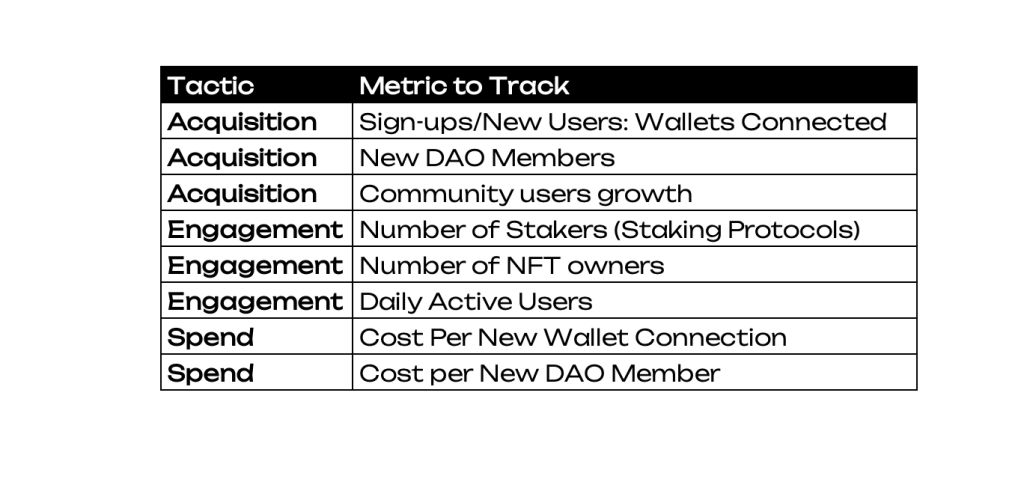 Tracking metrics for Web3 campaigns requires a different approach than traditional digital marketing. Here are some key metrics to consider: